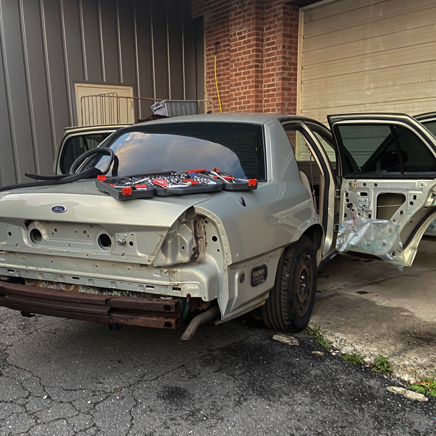 Pictured on the right is the 2005 Police Interceptor that we stripped the entire interior out of for my 2008, giving me an entire spare interior to use for reference photograpy.